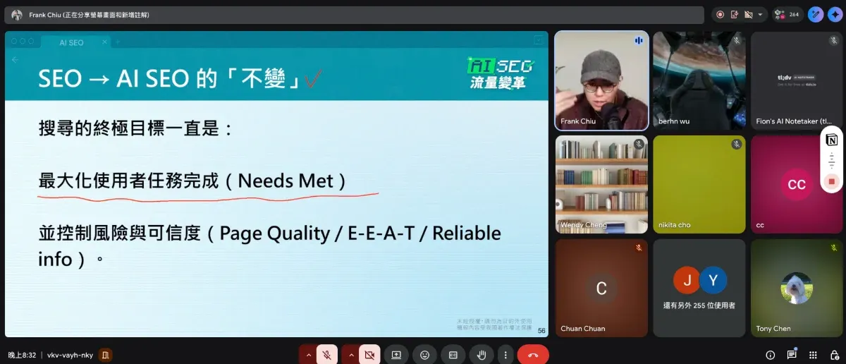 也因為這樣,當天法蘭克 Frank Chiu 在上半場把 AI SEO 的心法與判斷邏輯講清楚,下半場再接上我這一套操作流程時,整件事突然變得很完整。