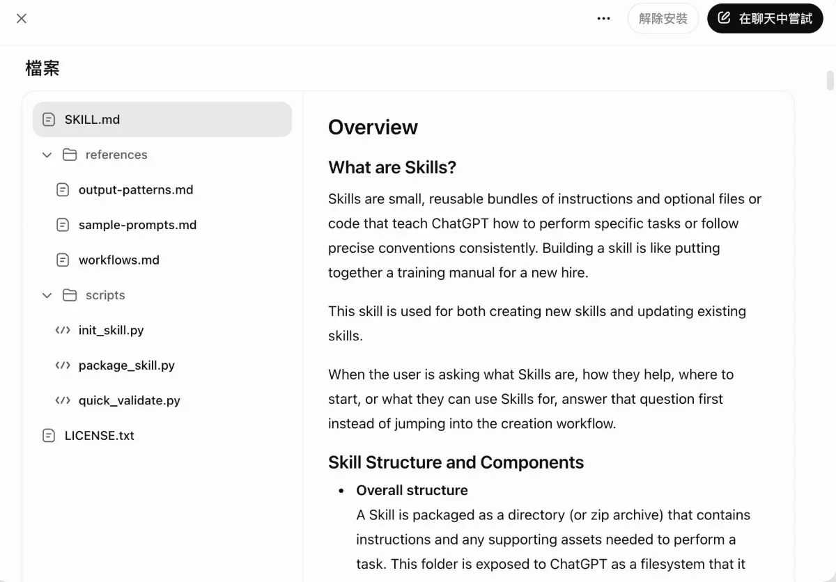 這就是 ChatGPT Skills 的核心架構。